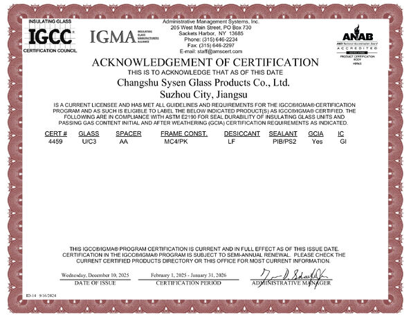 Standard: acknowledgement of certificationNumber: 4459Issue Date: 2019-02-01Expiry Date: 2020-01-31